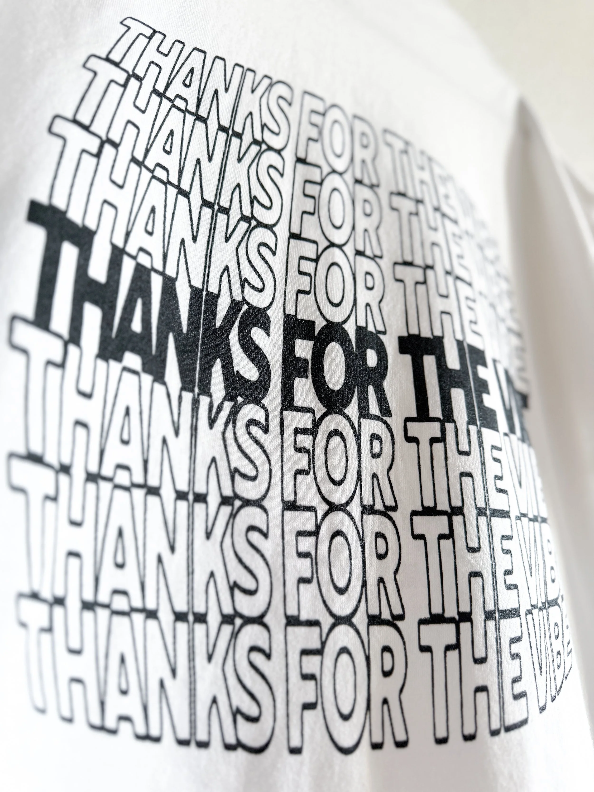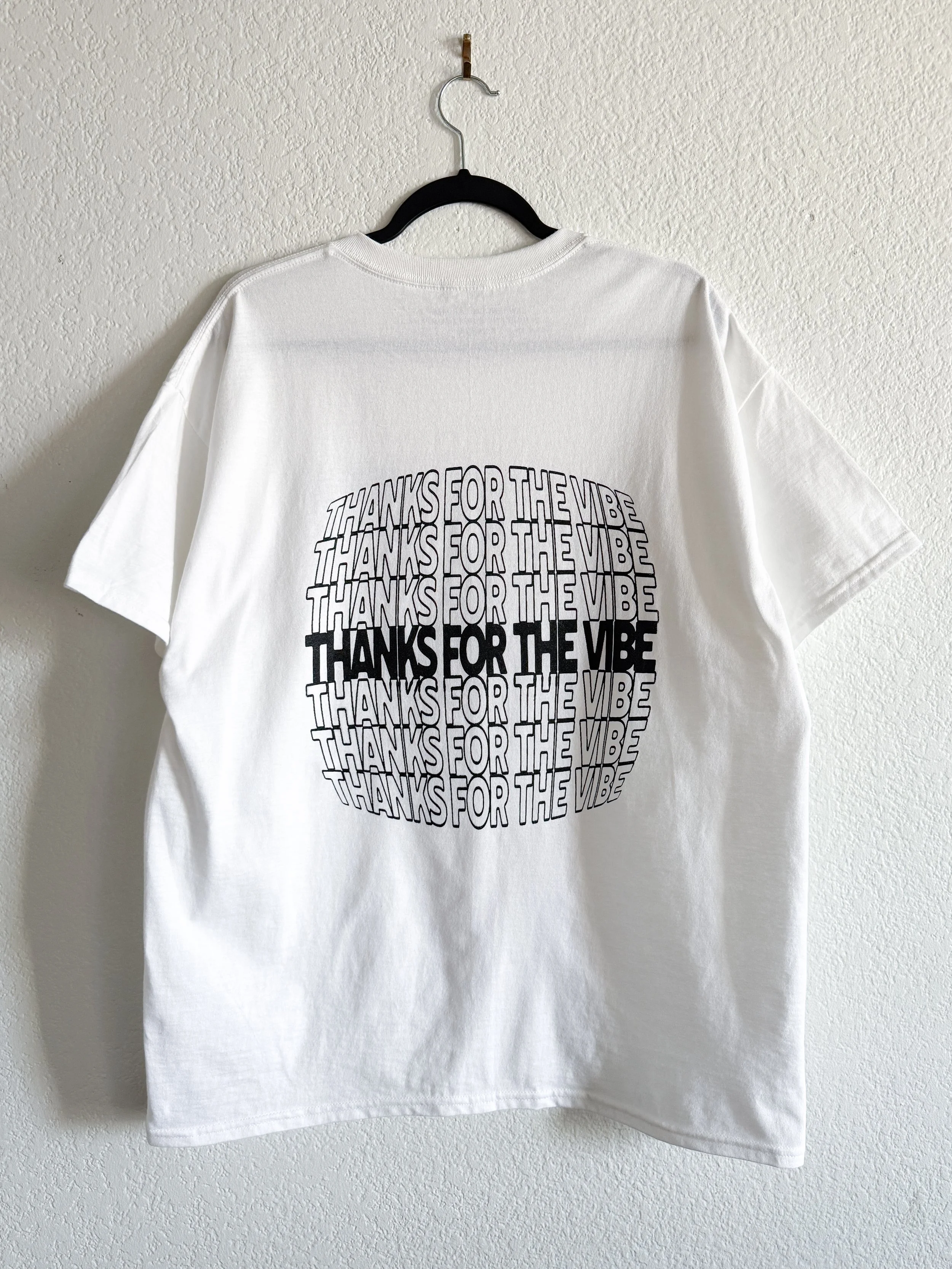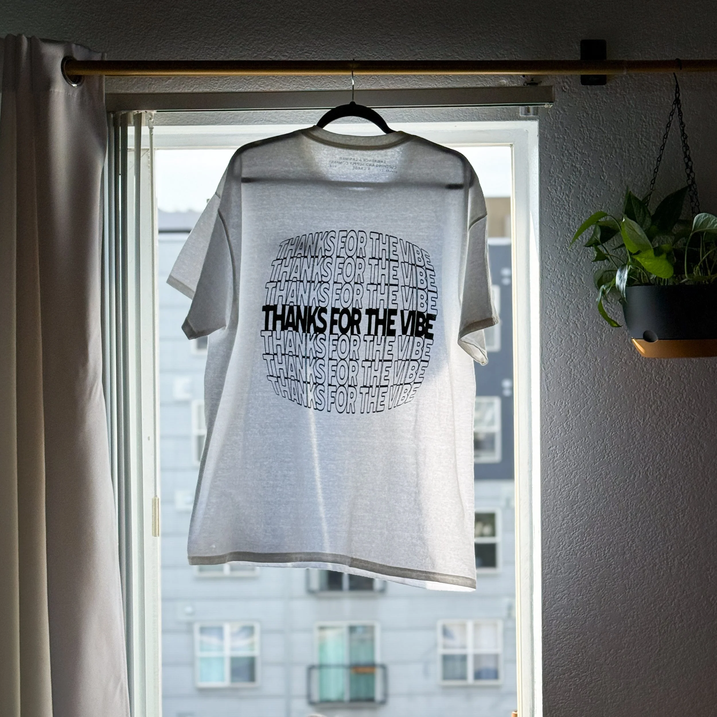 Categories: Select a Category Tees Storefront Tees | Thanks for the Vibe Tee $25.00 Small Medium Large XL XXL Add To Cart Added!